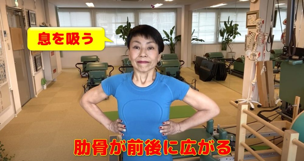 「ピラティスは胸式呼吸で、ヨガは腹式呼吸ですよね」って言われますけど、胸式呼吸をやっていきたいと思います。