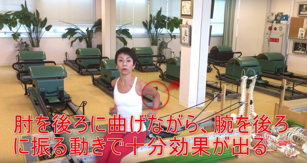 この腕を後ろに動かす動きを、このリフォーマーを使ってやっていきたいと思います。