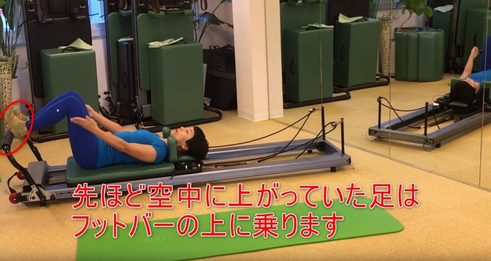 先ほど空中に上がっていた足はフットバーの上に乗ります。