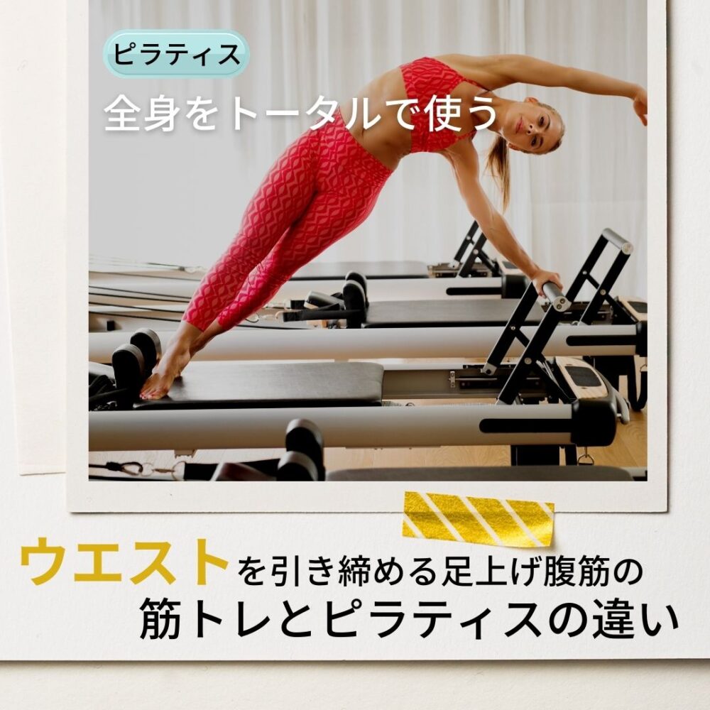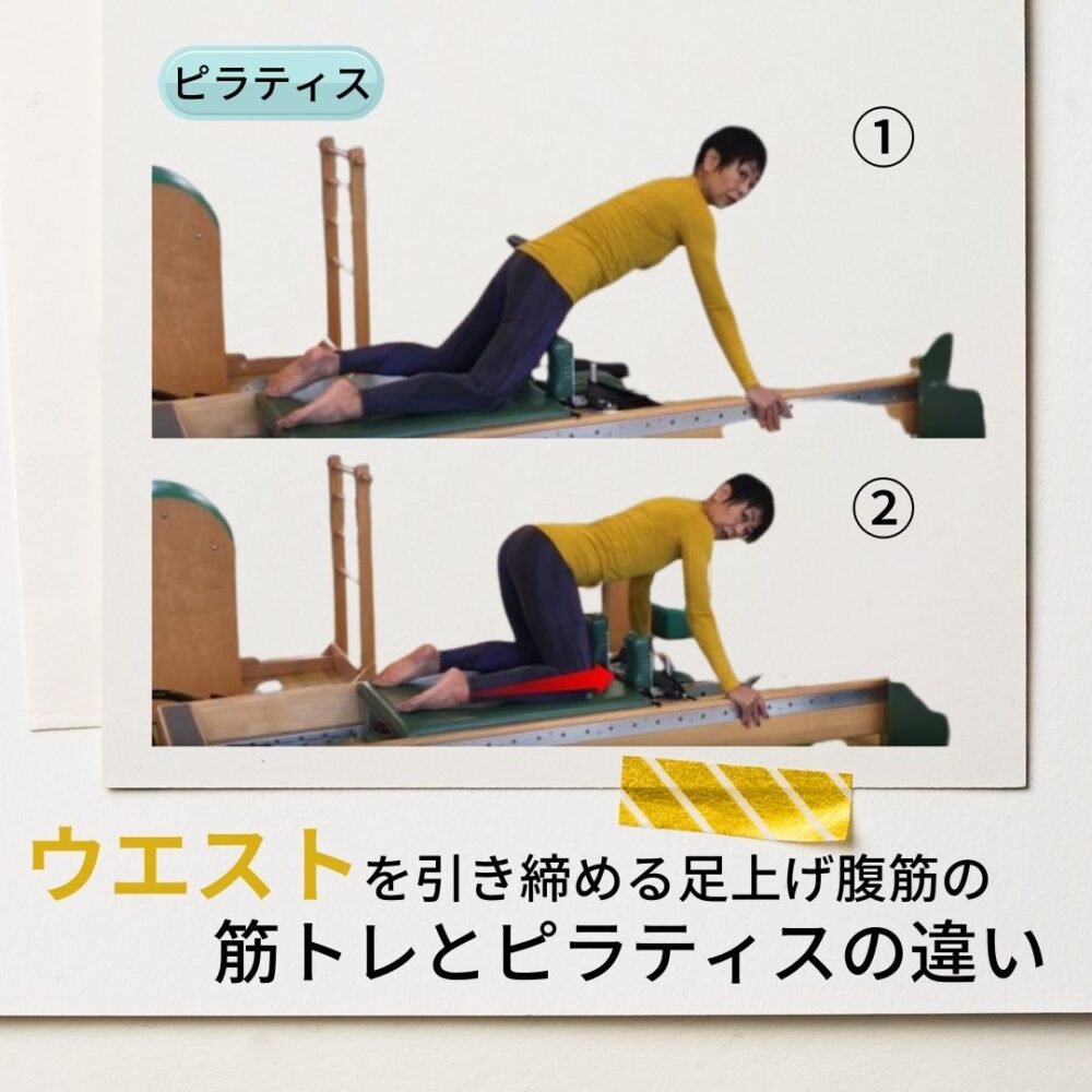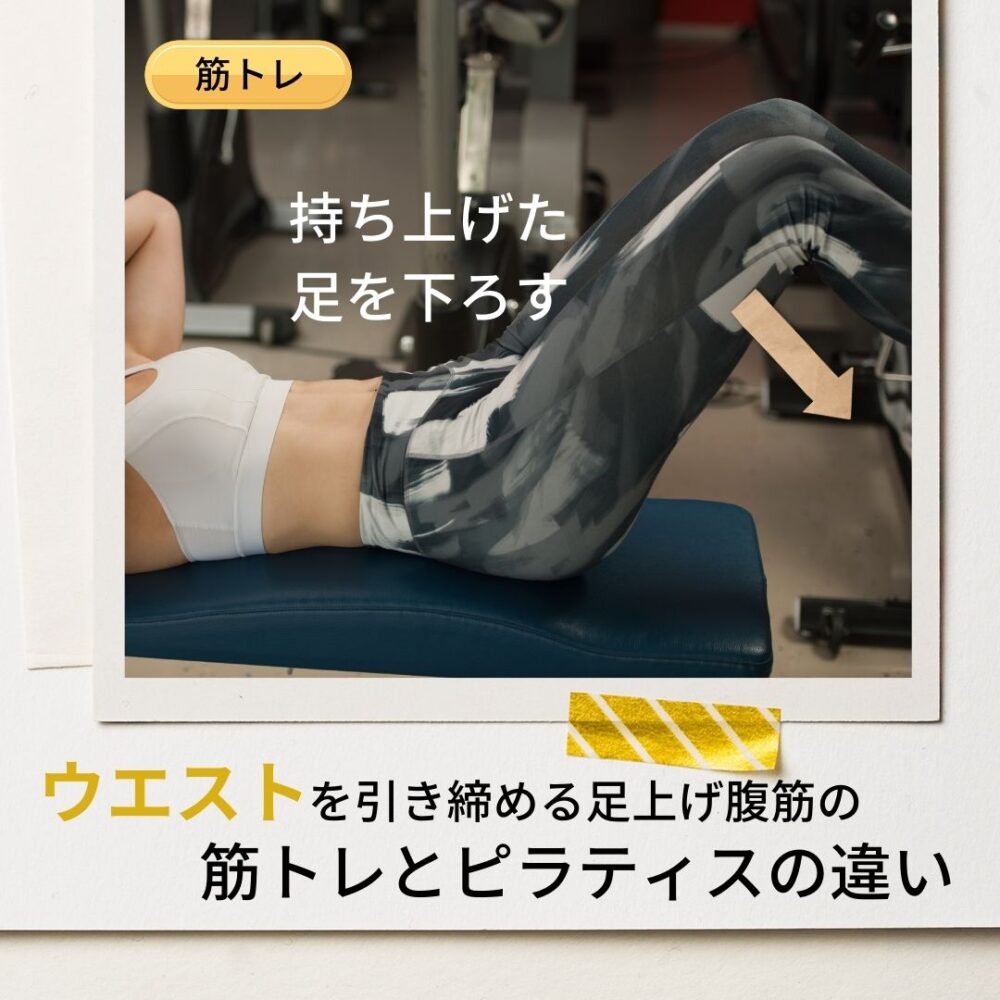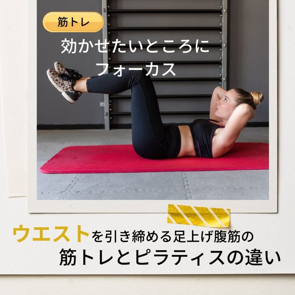 筋トレとピラティスで「足上げ腹筋」をした場合の違いについてご紹介しますね。