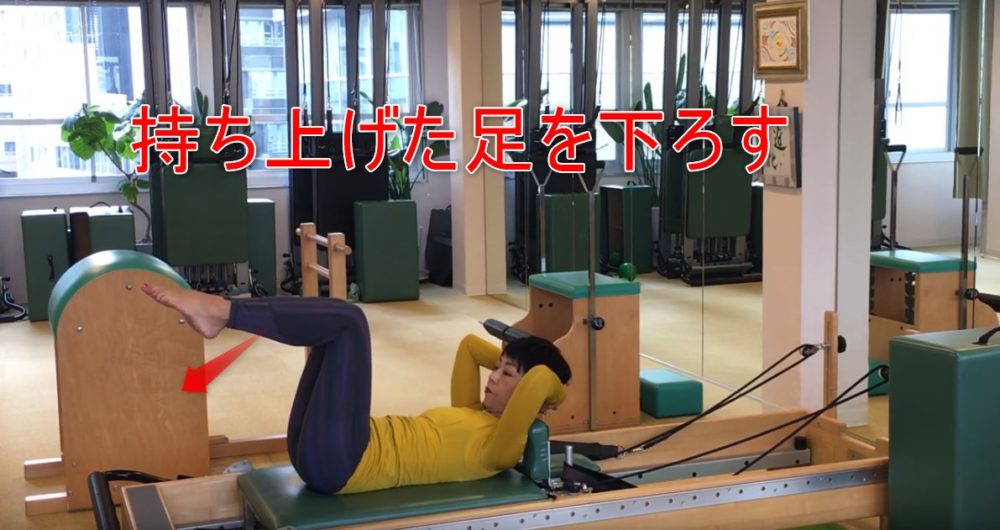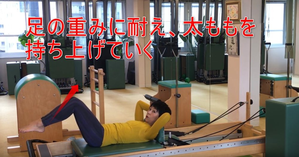 先ほど足を引き寄せた状態を、マシンを使って行います。