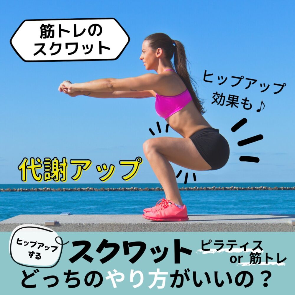 スクワットについて筋トレとピラティスの違いをご紹介します。