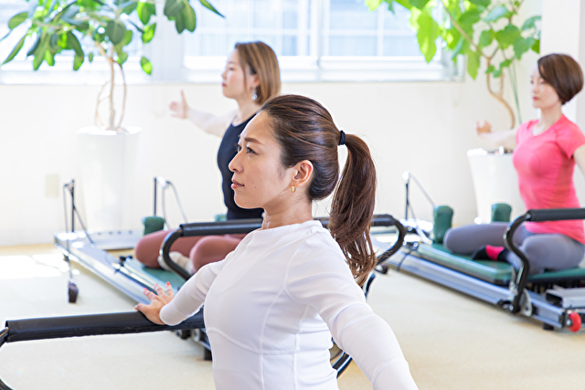 女性らしい身体のラインを保ちながら強い身体を作るのは、ピラティスならば当然です。当スタジオではさらに、他のピラティススタジオには見られない変化を狙います。進化独自の手法で「美しいボディライン」と「美しいフェイスライン」を手に入れることができます。