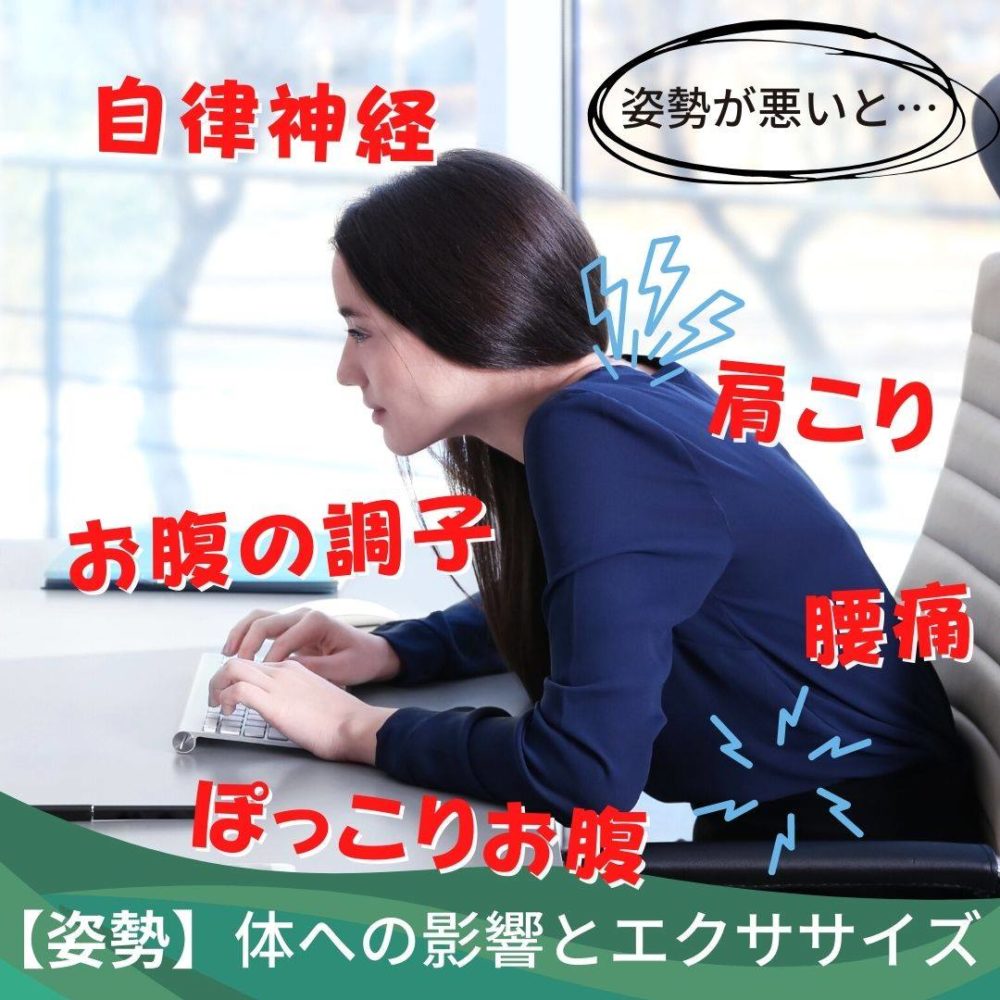 姿勢の悪さが自律神経の働きを妨げ、体調の不良を感じる場合があります。