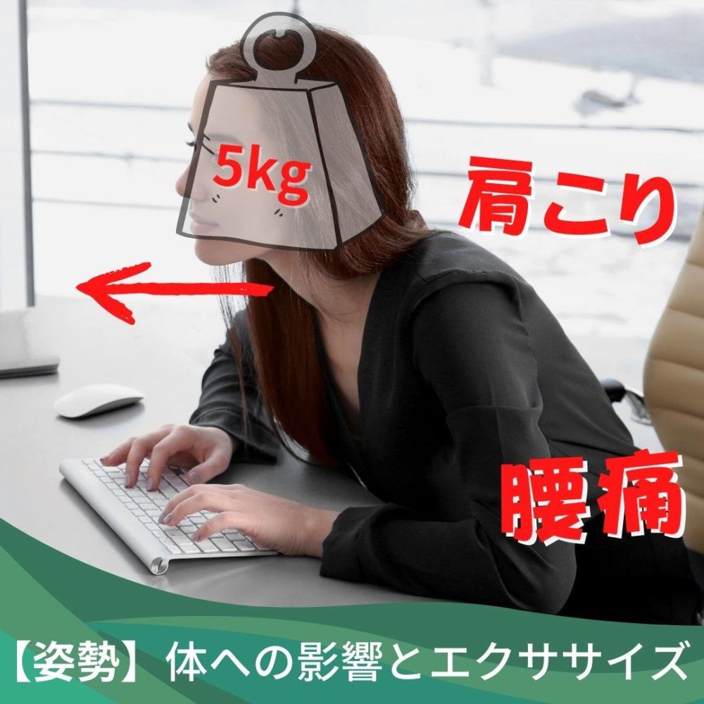 デスクワークで起きる悪い姿勢の代表格歯は、頭が前に出た姿勢。