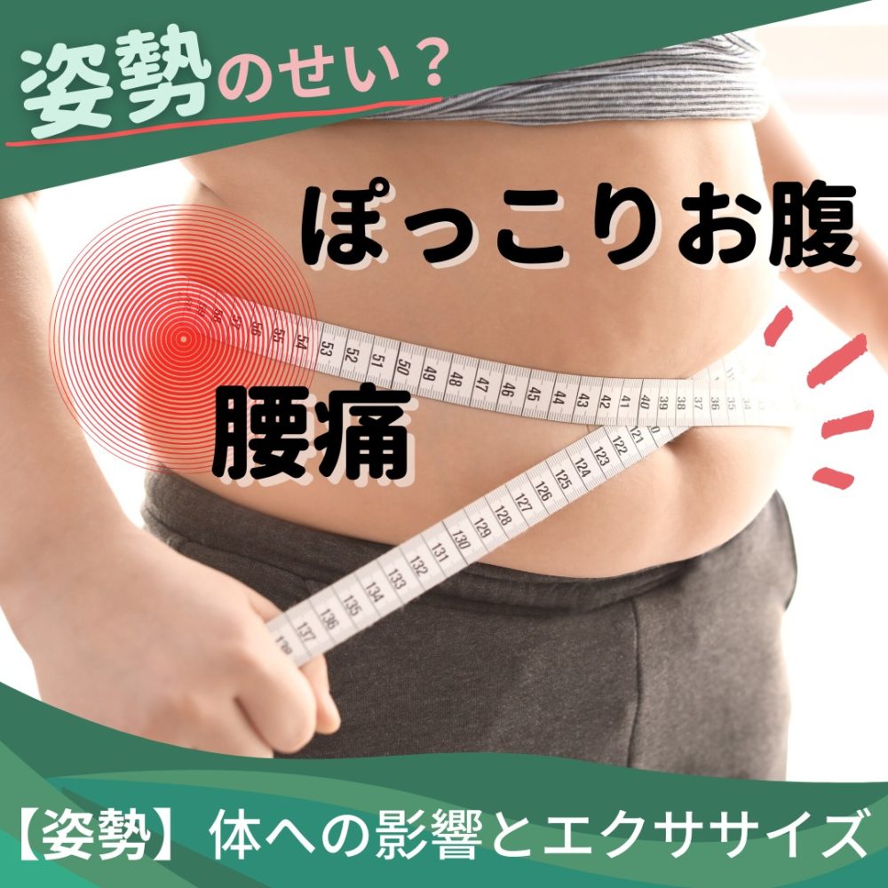 姿勢が悪くなると腹筋が衰えるとも言えるし、または腹筋が衰えるから姿勢が悪くなるとも言えます。結果ぽっこりこりお腹の原因となります。