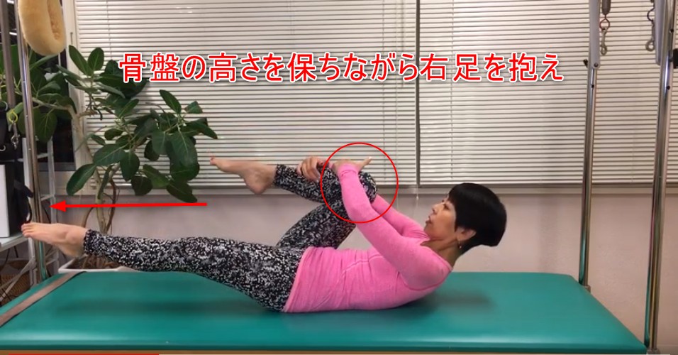 そしてこれが準備で着たら骨盤の高さを保ちながら右足を抱え