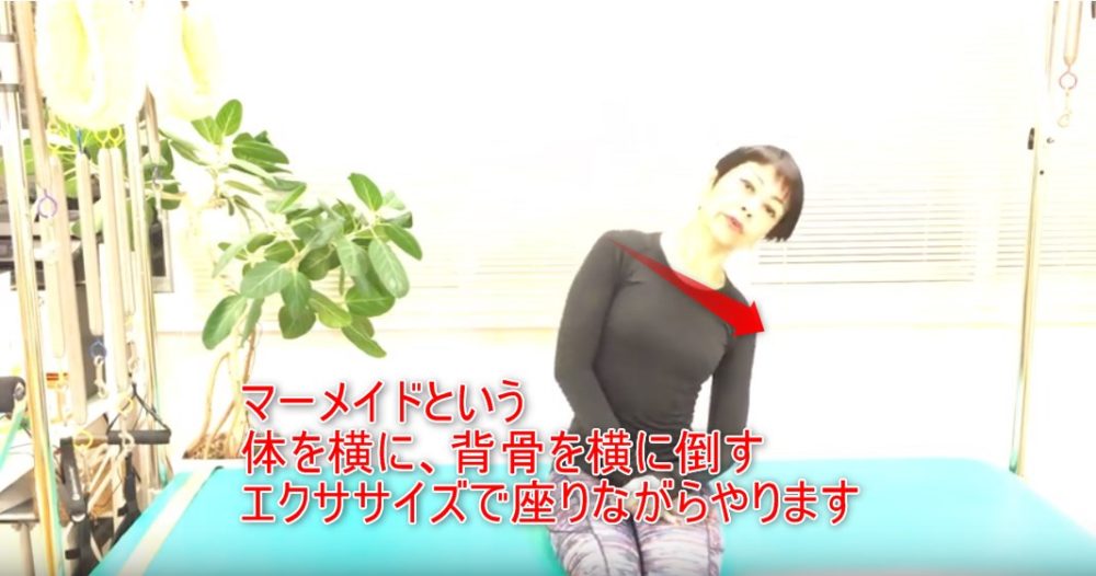 マーメイドというエクササイズ体を側屈、横に倒すね、背骨を横に倒す。