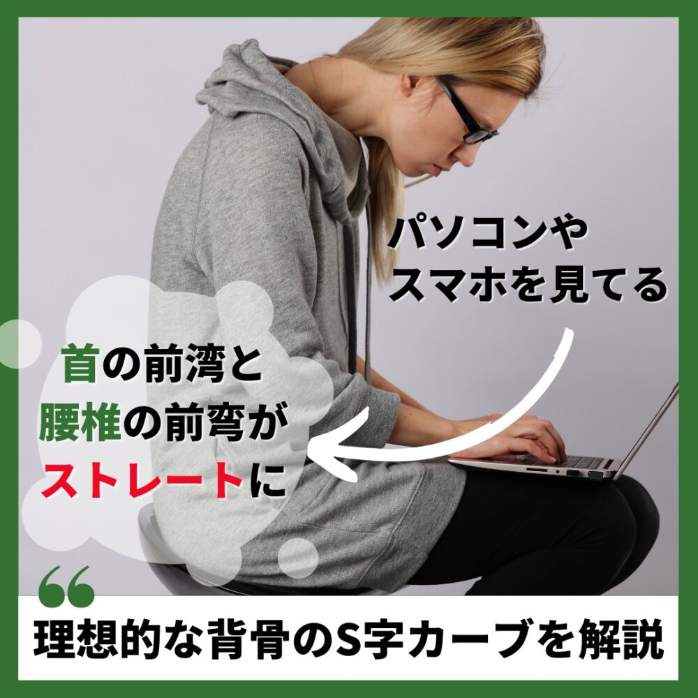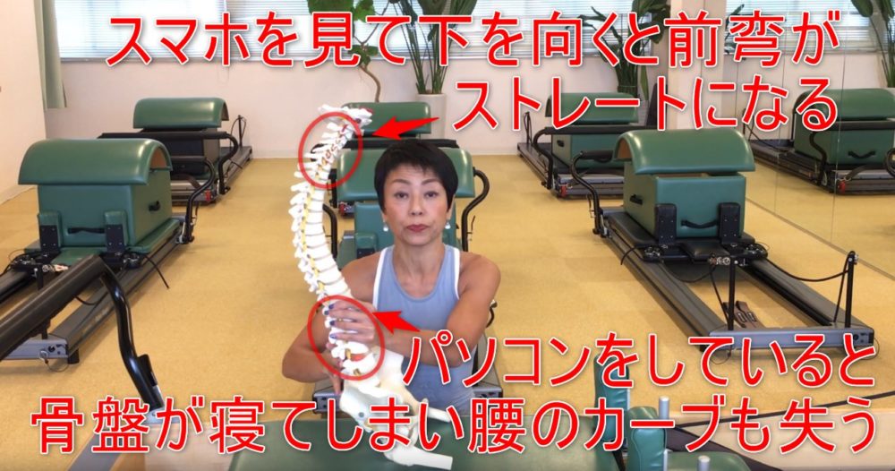 スマホを見ると下を向いていくため、より前弯がなくなってストレートになってきます。