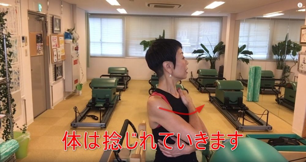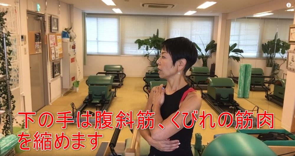 もちろんこれっ手を横に伸ばしながらやってもいいんですけれども、まずは動きの本質的なところを体に覚えさせるために、鎖骨プッシュ下の手で肋骨を触るっていう方法をご紹介しました。