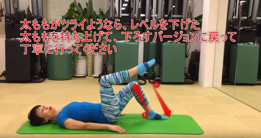 もしもこれで、太ももが大変だという場合でしたら、わざわざこれをやらずにレベルを下げたこのバージョンに戻って、丁寧に行ってください。