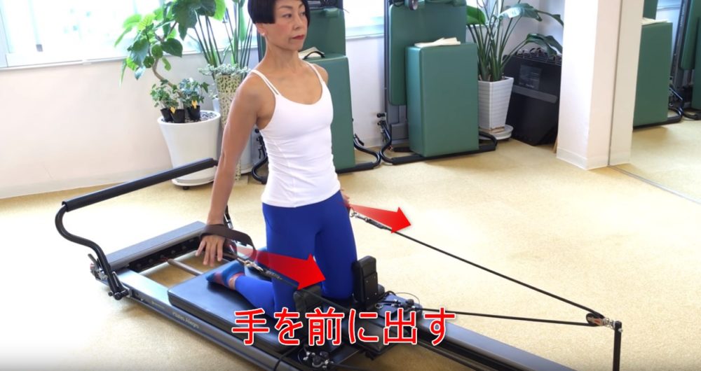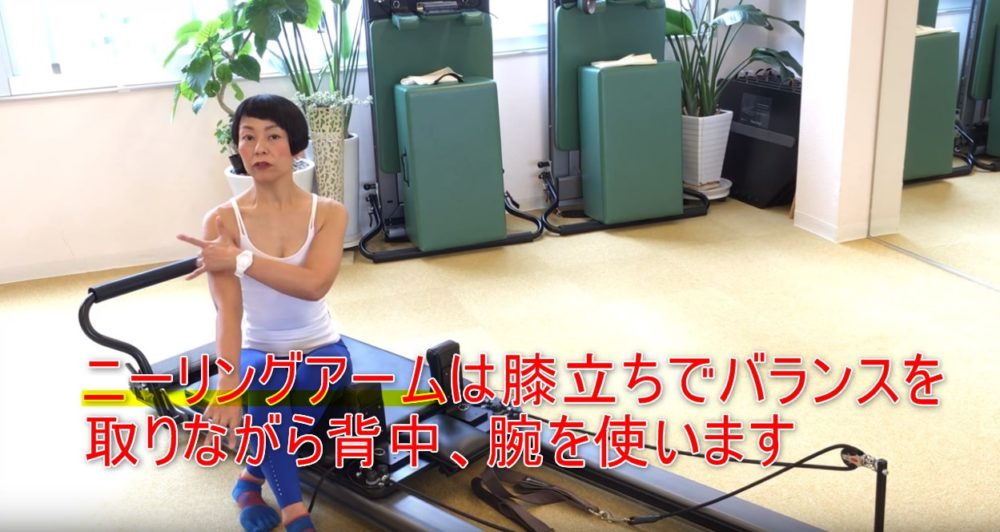 今お見せしたエクササイズはニーリングアームといい、膝立ちでバランスを取りながら背中、そして腕を使うというエクササイズです。