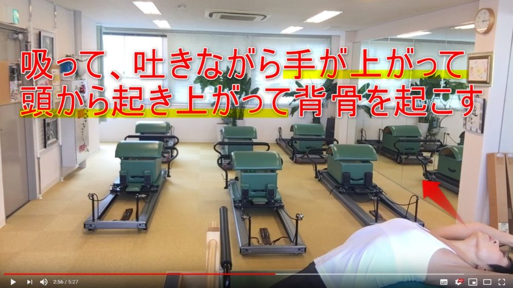 吸って、吐きながら手が上がって頭から起き上がって背骨を起こす